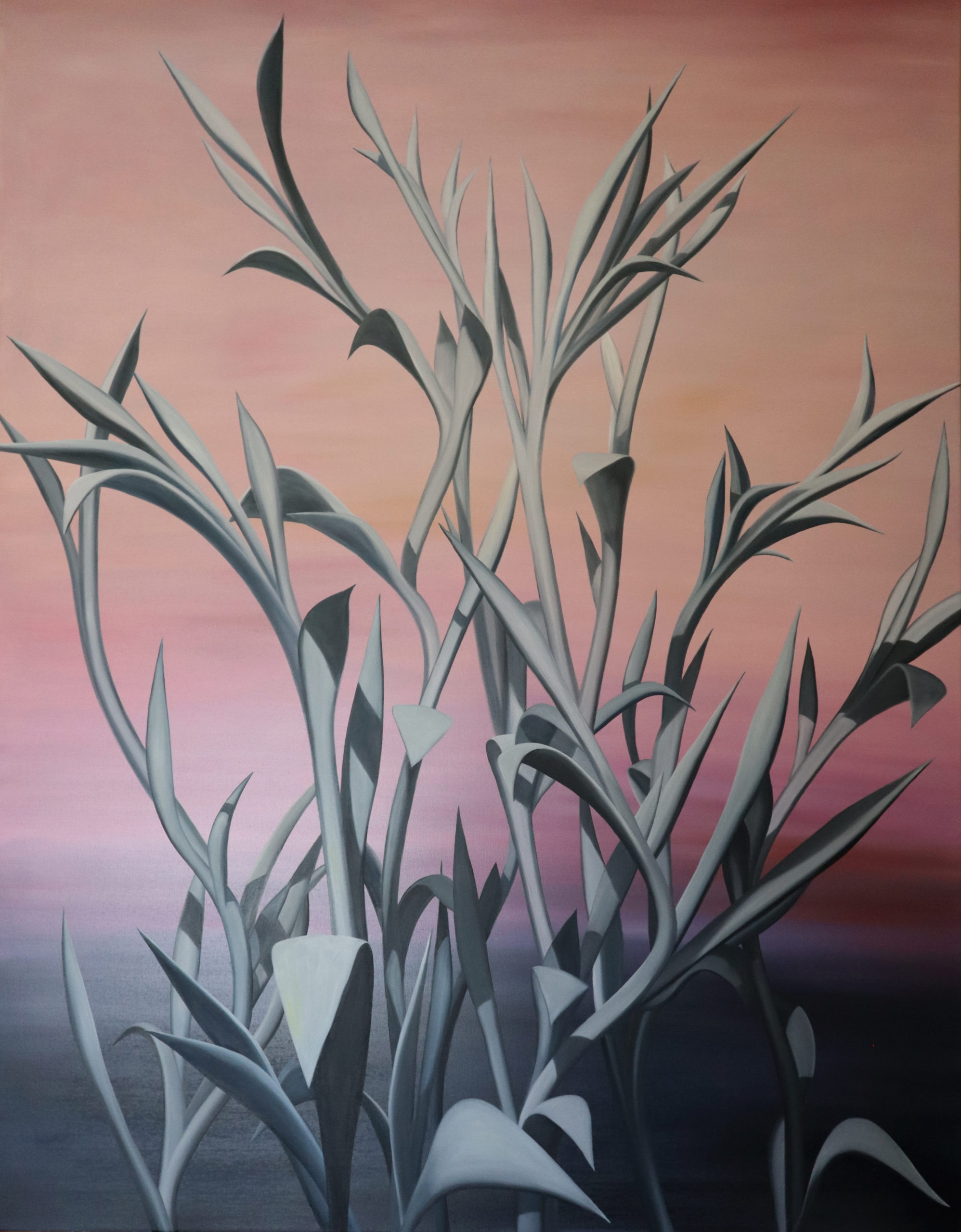 La série In Silico est composée de peintures à l’huile sur toile mettant en scène une nature digitalisée. Ce travail a été démarré en février 2020 après deux étapes significatives : la série Vanités (2018 – 2020) qui mettait pour la première fois en scène des objets végétaux dans mon travail, et la réalisation en 2019 d’un film d’animation 3D en collaboration avec le dessinateur belge François Schuiten, qui aura été pour moi l’occasion d’approfondir mes compétences en modélisation informatique.