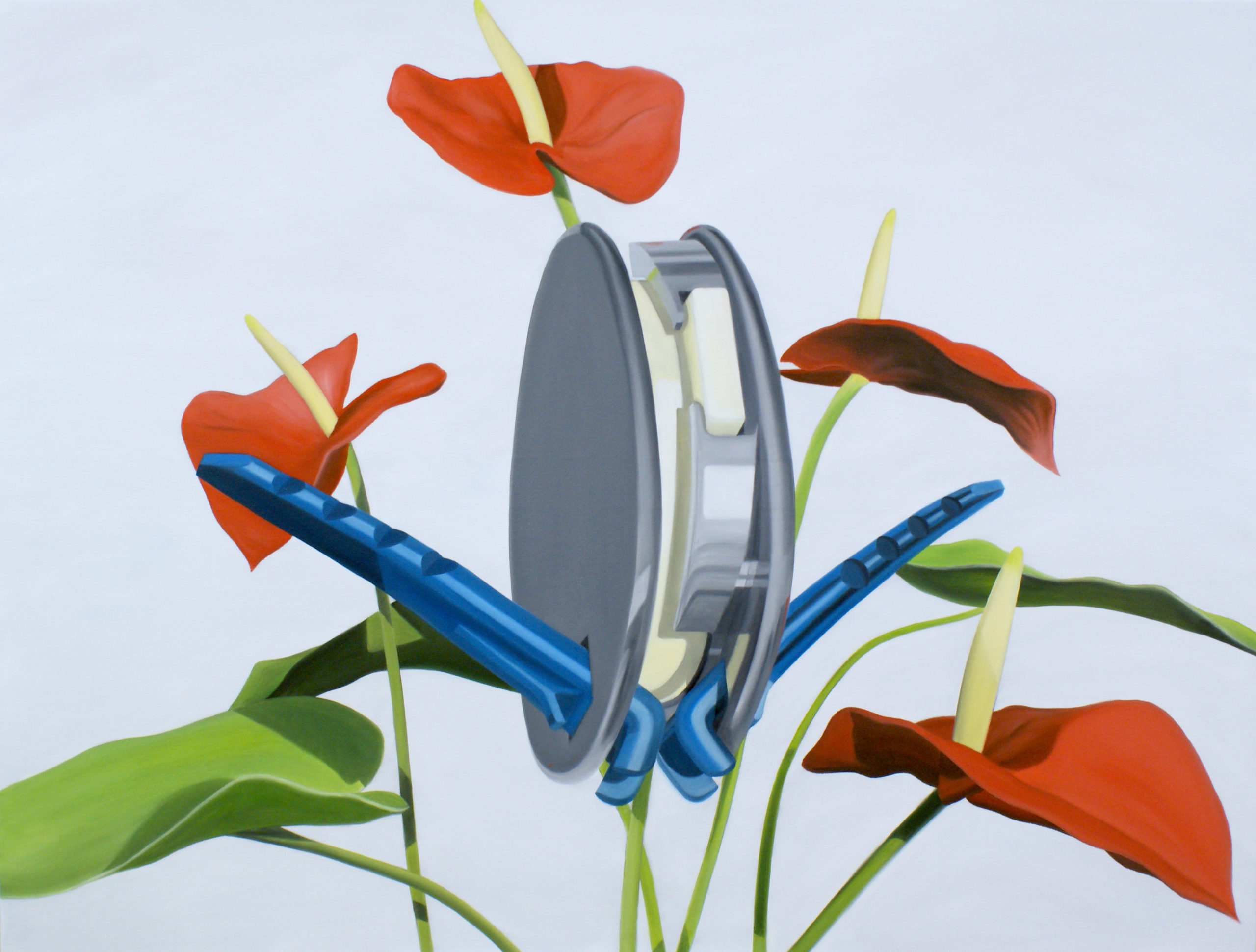 À partir de ces données, j’effectue depuis fin 2013 une série de peintures représentant ces formes dépourvues de leur fonction, comme des « natures mortes », où des objets hybrides, mi-sculpturaux.