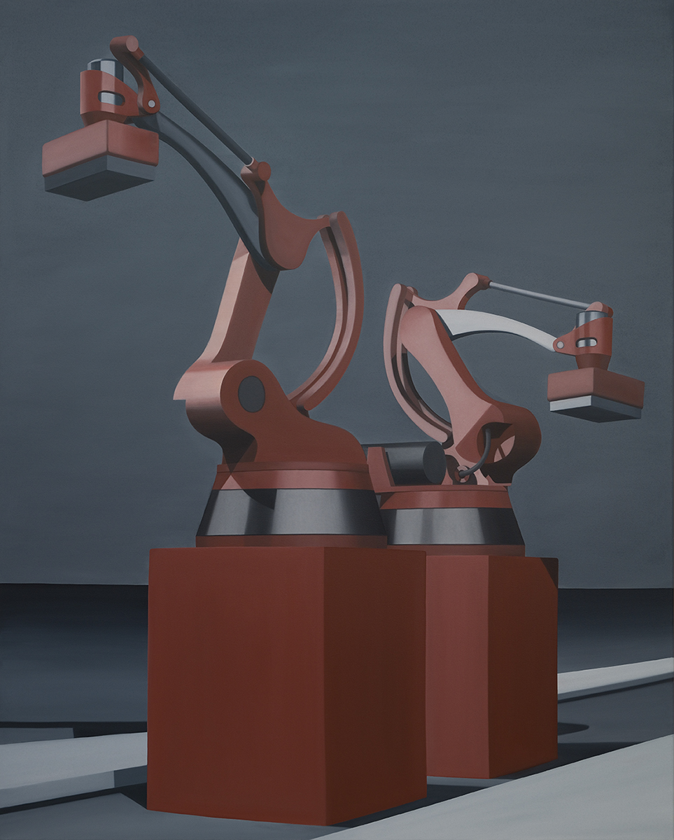 Cette série est composée de peintures (huiles sur toiles) représentant différents éléments industriels que j’ai observés ou pratiqués. Les machines me fascinent en tant qu’éléments générateurs d’objets, de séries, de processus, mais également sur le plan formel, car leurs formes ont pour seule origine la fonction.